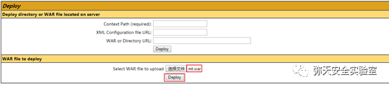已经成功进入 Tomcat web应用程序管理界面了,下面让我开始部署War包,来Getshell吧。