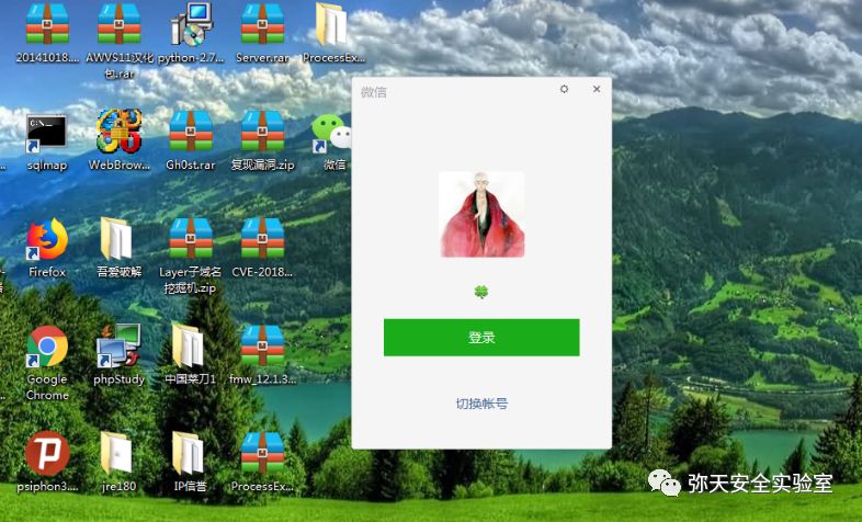 在win7中打开微信 不需要登陆 就能在kali中接受到反弹的shell。