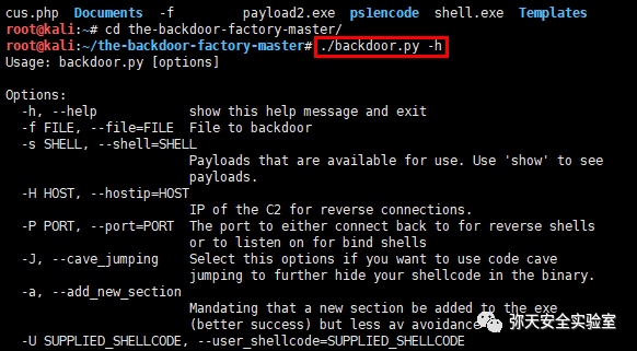 执行 ./backdoor.py -h 出现测试安装是否成功