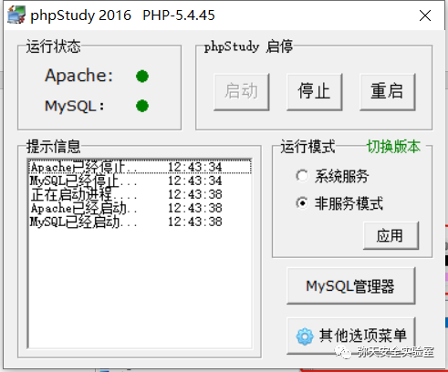 从某些下载站下载存在问题的phpstudy5.4.45,在虚拟机中解压安装,与外网隔离情况下开启PHPstudy。