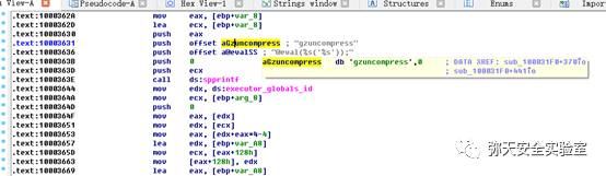 zend_eval_string处执行v42处执行的代码,我们把数据提取出来,并进行处理,并且经过php的gzuncompress解码。