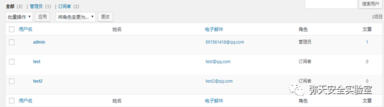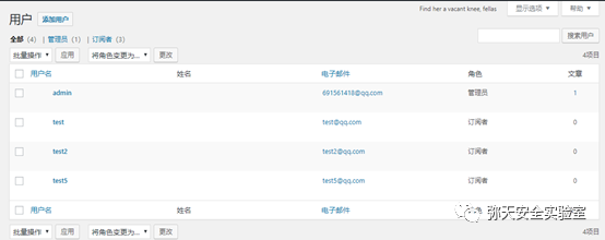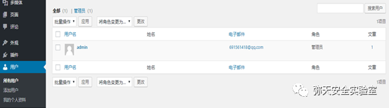 在wordpress的管理用户界面,可以看到只有admin一个用户