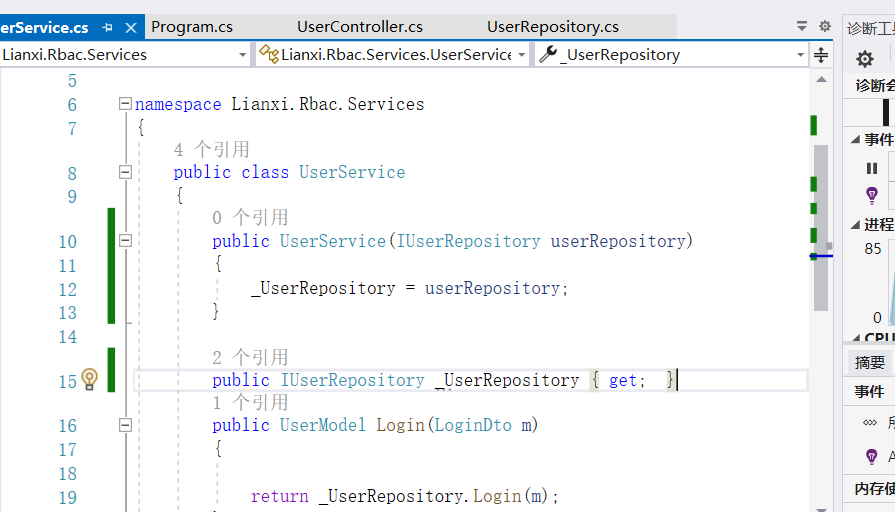 第一个:InvalidOperationException:无法解析“Lianxi.Rbac.Repository”类型的服务。当试图激活' lianxin . rbac . services . userservice '时,UserRepository'。