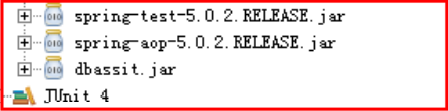 1)spring和JUnit的整合jar包导入。这里需要注意的是,这里也需要spring的aop的jar包