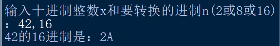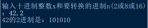 1 x,n=eval(input('输入十进制整数x和要转换的进制n(2或8或16):')) 2 a=[]