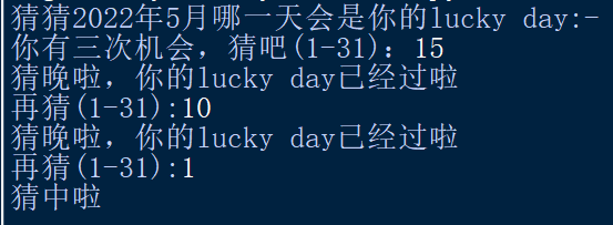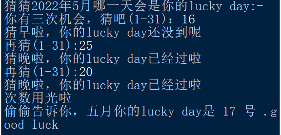 print('猜猜2022年5月哪一天会是你的lucky day:-')