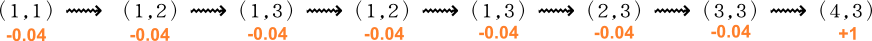 下面橙色的值是每个 state 的 reward。 在这例子中,每个不是终点的格,也会扣 0.04 分。