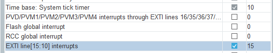 使能中断并调整优先级,优先级默认为0,因为延时函数优先级也为0,延时不能打断外部中断