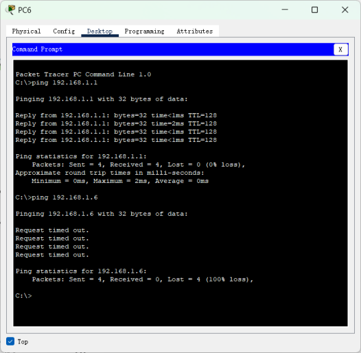 我们用PC6去pingPC0,再用PC6去pingPC5。
