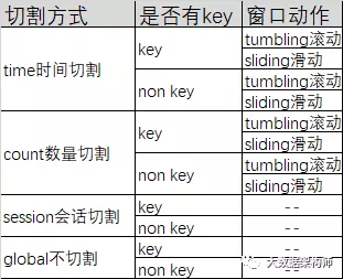 Flink的窗口按切割方式、是否有key值、滑动还是滚动三个维度,分为以下几种情况:
