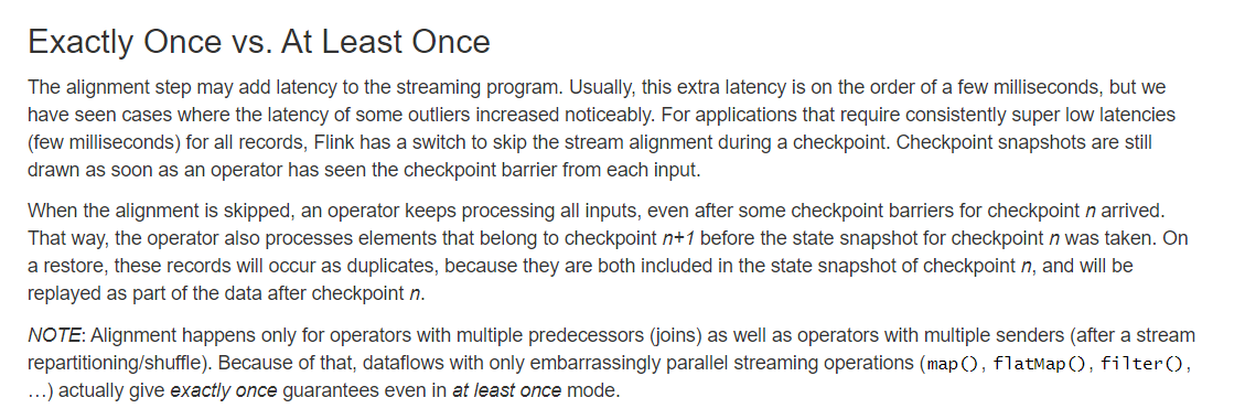 注:图片截图 https://ci.apache.org/projects/flink/flink-docs-release-1.10/zh/internals/stream_checkpointing.html#exactly-once-vs-at-least-once