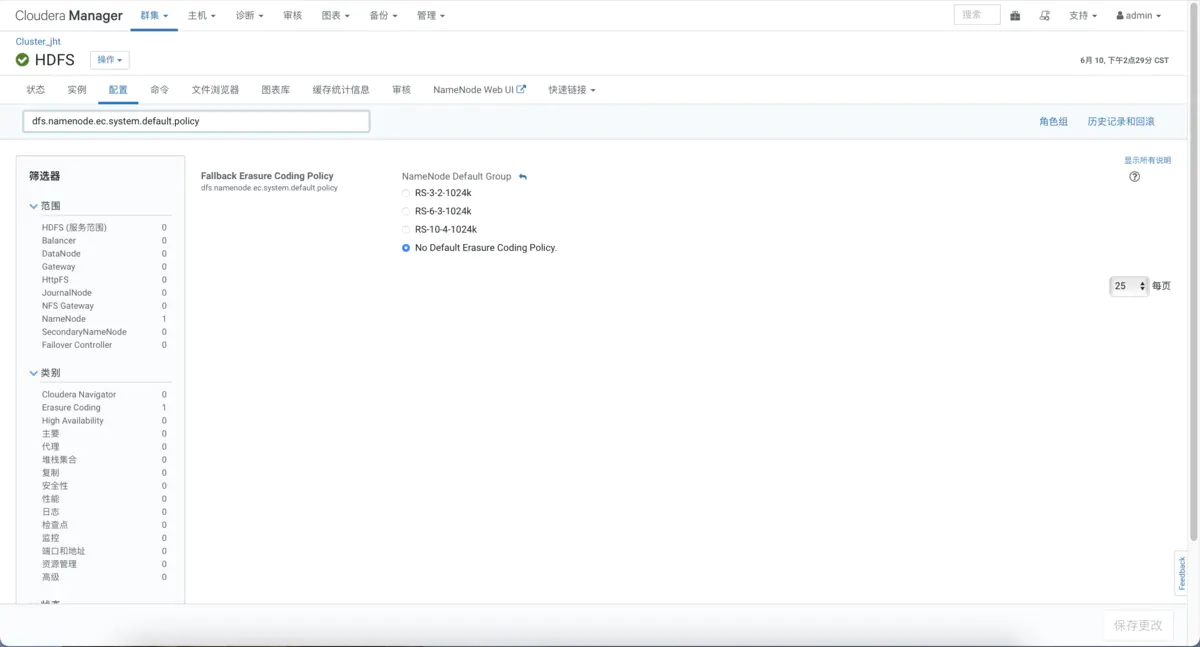 修改为No Default Erasure Coding Policy,我索性就不要这个什么纠删码