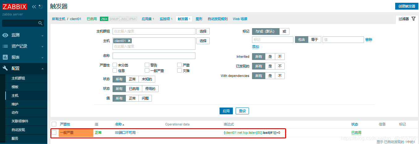 客户端服务器上安装agent,并且安装httpd服务,在zabbix网页添加此主机,并且配置监控项和触发器
