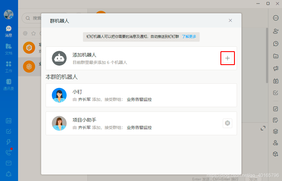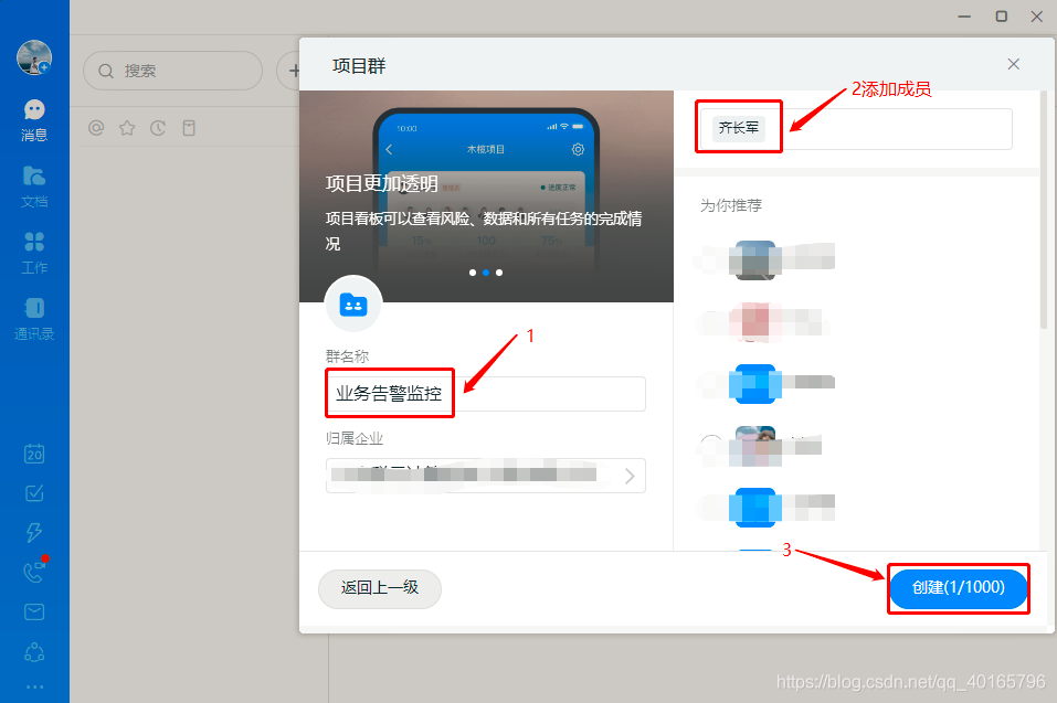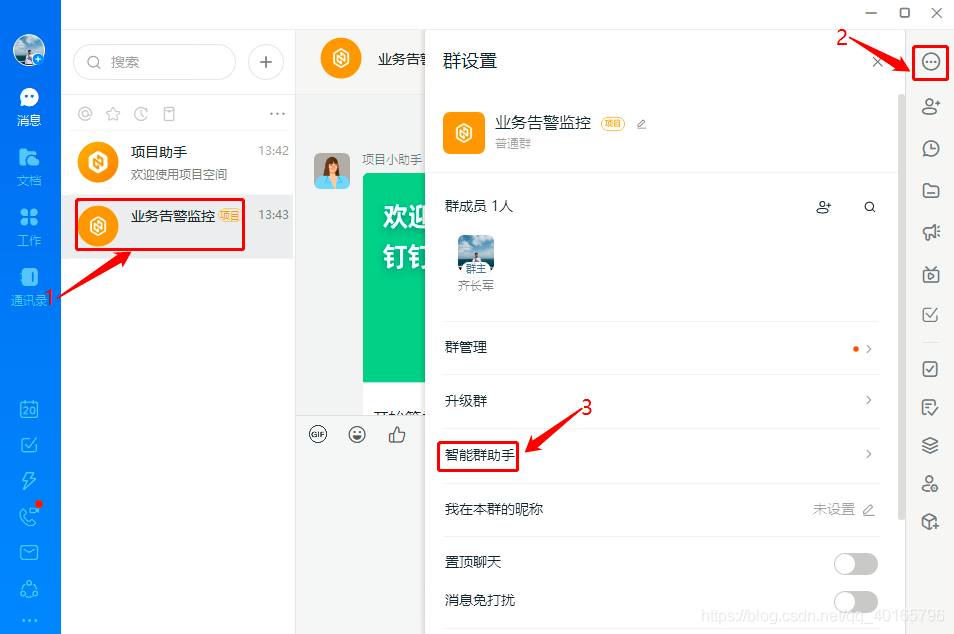 1、创建群聊,把需要收到报警的人员都拉到这个群: