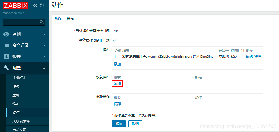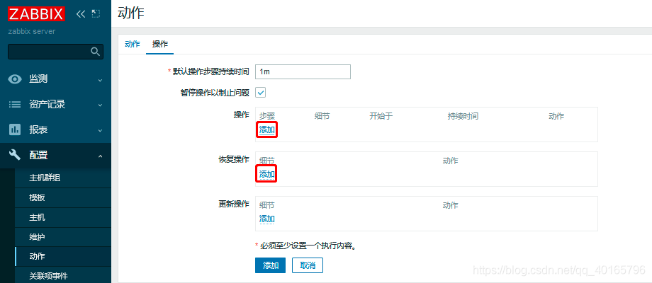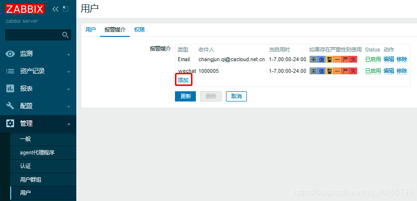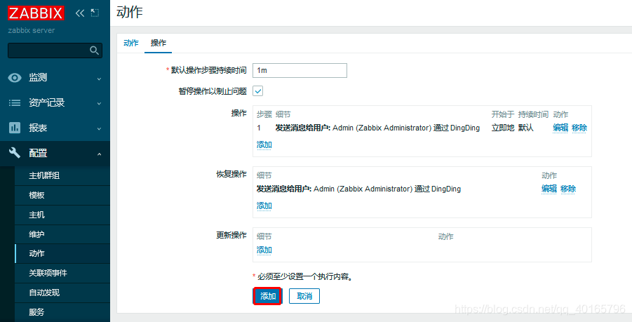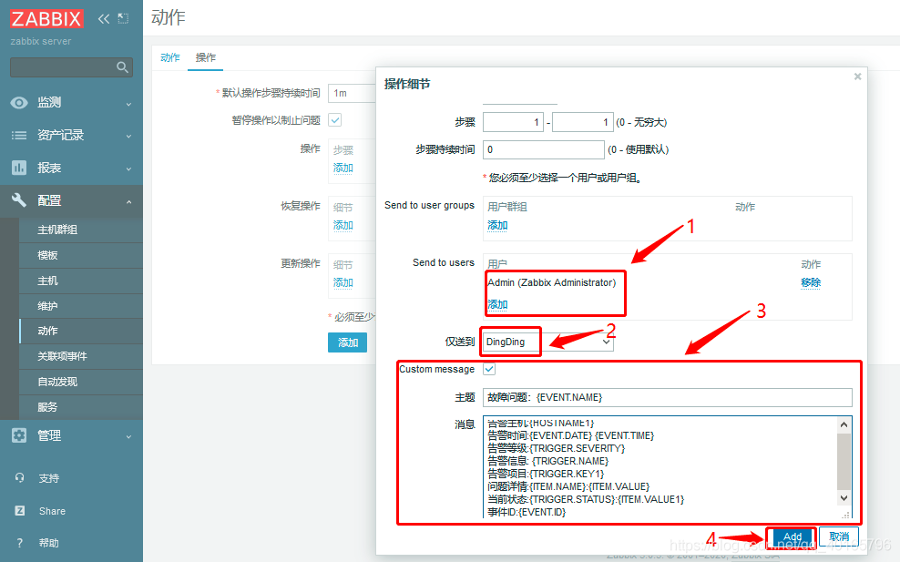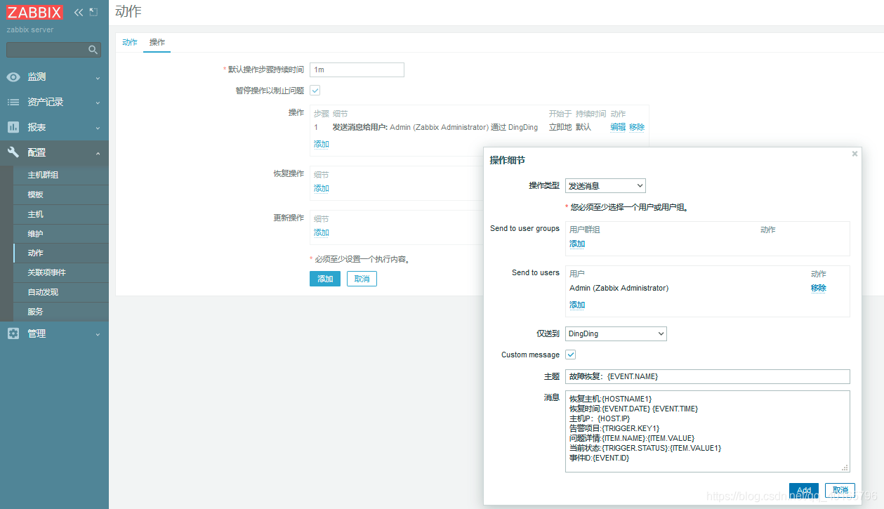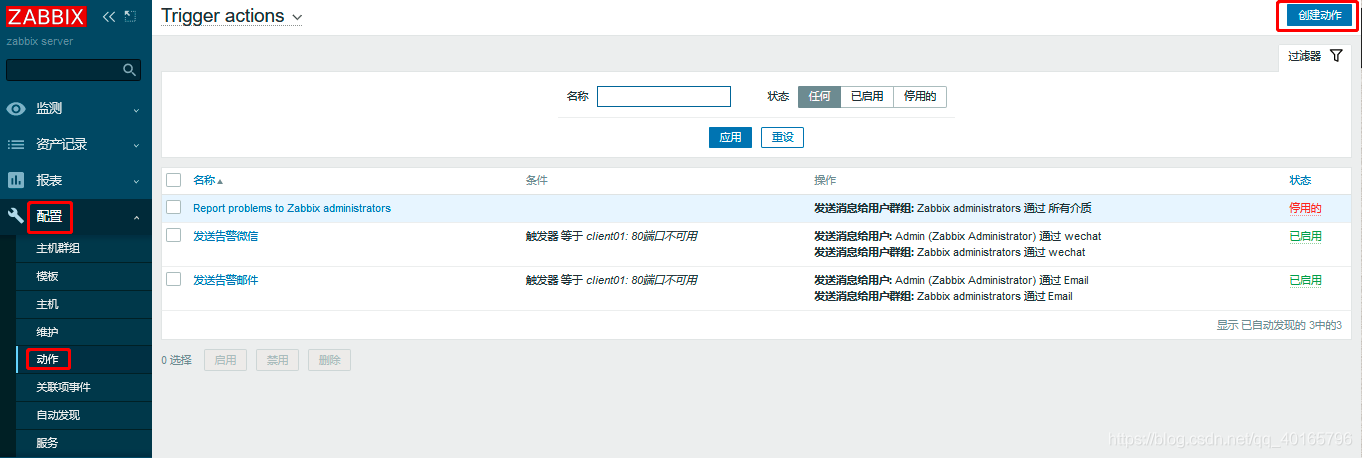 触发器触发"动作"——>特定的"报警媒介"——>单个用户的账号或用户组中用户的账号