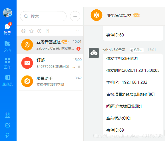 如果添加多个收件人,则机器人群里就会发送多个告警信息,一个收件人发一条信息.