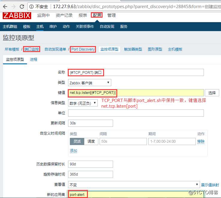 2.修改被监控端的zabbix_agent.conf配置文件,新增KEY值port.alert