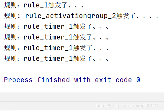 通过控制台可以发现,上面的两个规则因为属于同一个分组,所以只有一个触发了。同一个分组中的多个规则如果都能够匹配成功,具体哪一个最终能够被触发可以通过salience属性确定。