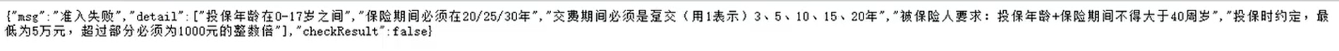下面保险产品准入规则的简化版,当不满足以下规则时,系统模块需要返回准入失败标识和失败原因