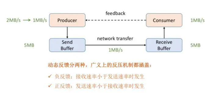 Consumer 需要及时给 Producer 做一个 feedback,即告知 Producer 能够承受的速率是多少。动态反馈分为两种: