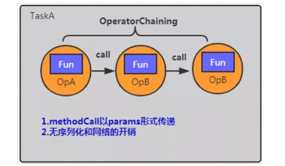 通过算子链 operator chain 串联多个算子,主要作用是避免了序列化和网络通信的开销。