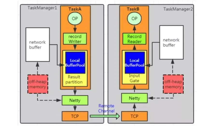 - 不同 Task 且不同 TaskManager 之间的交换。