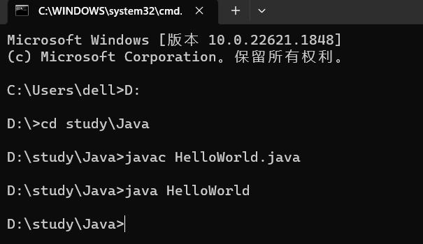 安装Oracle的JDK在电脑上配置环境变量,下载之后自动配置完成。然后编写HelloWorld.java程序,win+r——cmd调用命令面板来编译程序,但是未运行成功。