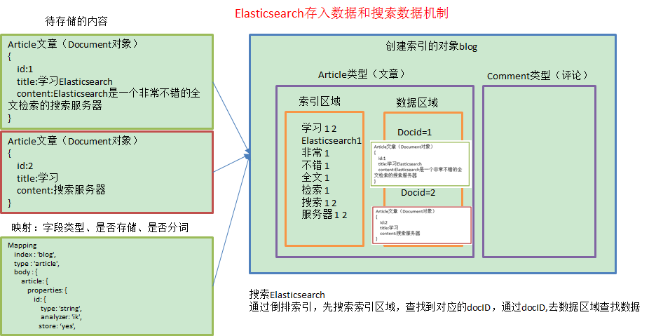 2)映射(mapping):数据如何存放到索引对象上,需要有一个映射配置, 包括:数据类型、是否存储、是否分词等。