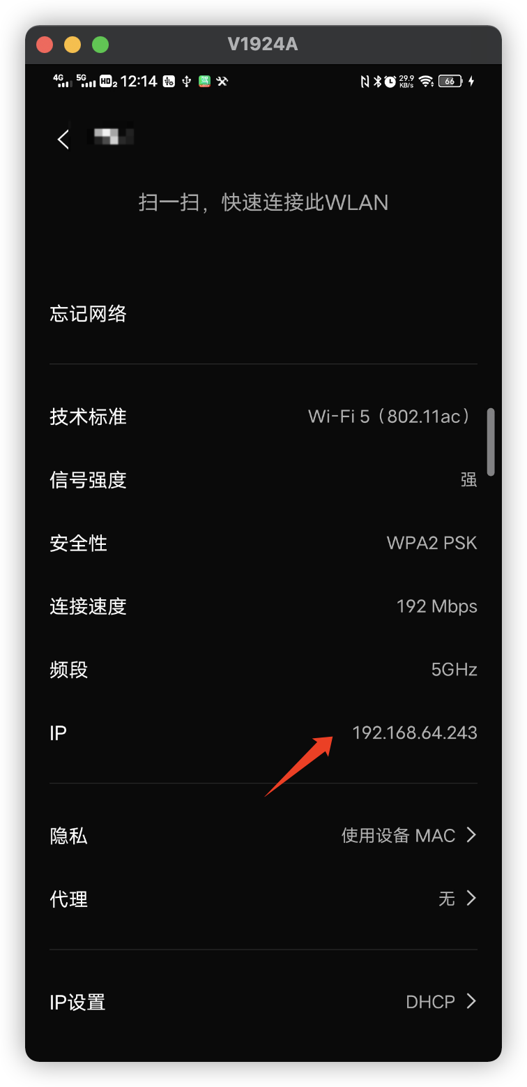如图,两种方法都可以得到我的手机IP地址(${DEVICE_IP})是192.168.64.243;