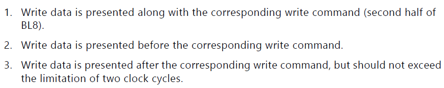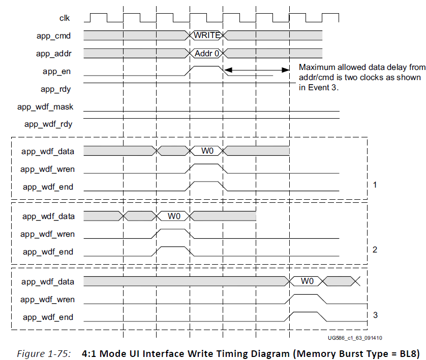 上图很好地说明了“写命令通道”和“写数据通道”相互的时序要求。虚线框中1,2,3三种情况都是被准许的。Xilinx官方对此解释如下: