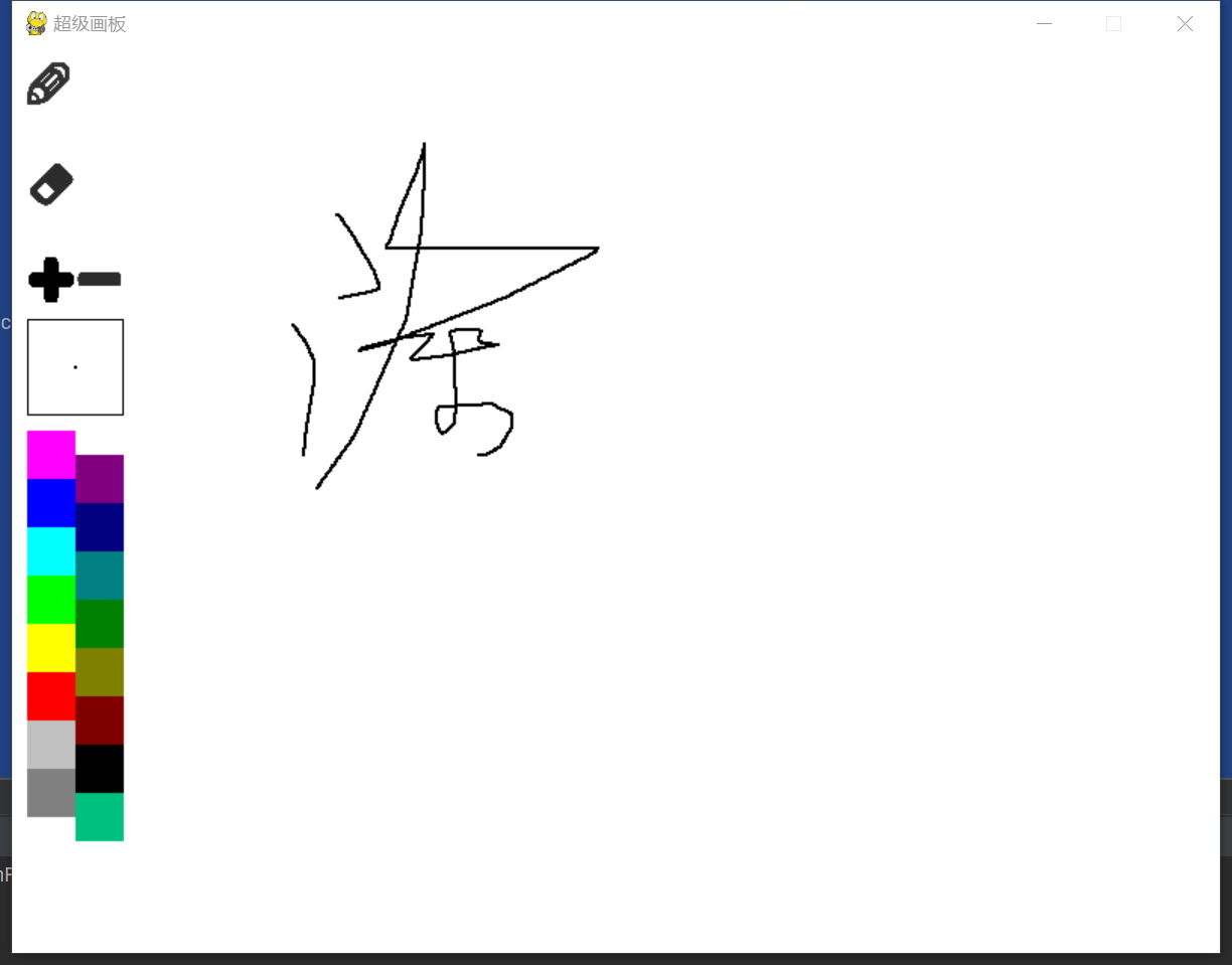 # -*- coding: utf-8 -*- # pip install pygame """ DrawTool.py 画板 """ import math import pygame from pygame.locals import QUIT, KEYDOWN, K_ESCAPE, MOUSEBUTTONDOWN, MOUSEMOTION, MOUSEBUTTONUP # 导入事件 class Brush(object): """ 画笔类 """ def __init__(self, screen): self.screen = screen # 屏幕对象 self.color = (0, 0, 0) # 颜色 self.size = 1 # 大小 self.drawing = False # 是否绘画 self.last_pos = None # 鼠标滑过最后的位置 self.space = 1 self.brush = pygame.image.load("img/pen.png").convert_alpha() # 画笔图片 self.brush_now = self.brush.subsurface((0, 0), (1, 1)) # 初始化画笔对象 # 开始绘画 def start_draw(self, pos): self.drawing = True self.last_pos = pos # 记录鼠标最后位置 # 结束绘画 def end_draw(self): self.drawing = False # 获取当前使用画笔 def get_current_brush(self): return self.brush_now # 获取当前使用的画笔对象 def set_size(self, size): # 设置画笔大小 if size < 0.5: # 判断画笔尺寸小于0.5 size = 0.5 # 设置画笔最小尺寸为0.5 elif size > 32: # 判断画笔尺寸大于32 size = 32 # 设置画笔最大尺寸为32 self.size = size # 设置画笔尺寸 # 生成画笔对象 self.brush_now = self.brush.subsurface((0, 0), (size * 2, size * 2)) # 获取画笔大小 def get_size(self): return self.size # 设置画笔颜色 def set_color(self, color): self.color = color # 记录选择的颜色 for i in range(self.brush.get_width()): # 获取画笔的宽度 for j in range(self.brush.get_height()): #获取画笔的高度 # 以指定颜色显示画笔 self.brush.set_at((i, j), color + (self.brush.get_at((i, j)).a,)) # 获取画笔颜色 def get_color(self): return self.color # 绘制动作 def draw(self, pos): if self.drawing: # 判断是否开始绘画 for p in self._get_points(pos): # 在两点之间的每个点上都画上实心点 pygame.draw.circle(self.screen, self.color, p, int(self.size)) self.last_pos = pos # 记录画笔最后位置 # 获取两点之间所有的点位,该函数通过对鼠标坐标前一次记录点与当前记录点之间进行线性插值 # 从而获得一系列点的坐标,从而使得绘制出来的画笔痕迹更加平滑自然 def _get_points(self, pos): points = [(self.last_pos[0], self.last_pos[1])] len_x = pos[0] - self.last_pos[0] len_y = pos[1] - self.last_pos[1] length = math.sqrt(len_x ** 2 + len_y ** 2) step_x = len_x / length step_y = len_y / length for i in range(int(length)): points.append( (points[-1][0] + step_x, points[-1][1] + step_y)) # 对 points 中的点坐标进行四舍五入取整 points = map(lambda x: (int(0.5 + x[0]), int(0.5 + x[1])), points) return list(set(points)) # 去除坐标相同的点 class Menu(object): """ 菜单类 """ def __init__(self, screen): self.screen = screen # 初始化窗口 self.brush = None self.colors = [ # 颜色表 (0xff, 0x00, 0xff), (0x80, 0x00, 0x80), (0x00, 0x00, 0xff), (0x00, 0x00, 0x80), (0x00, 0xff, 0xff), (0x00, 0x80, 0x80), (0x00, 0xff, 0x00), (0x00, 0x80, 0x00), (0xff, 0xff, 0x00), (0x80, 0x80, 0x00), (0xff, 0x00, 0x00), (0x80, 0x00, 0x00), (0xc0, 0xc0, 0xc0), (0x00, 0x00, 0x00), (0x80, 0x80, 0x80), (0x00, 0xc0, 0x80), ] self.eraser_color = (0xff, 0xff, 0xff) # 初始颜色 # 计算每个色块在画板中的坐标值,便于绘制 self.colors_rect = [] for (i, rgb) in enumerate(self.colors): # 方块颜色表 rect = pygame.Rect(10 + i % 2 * 32, 254 + i / 2 * 32, 32, 32) self.colors_rect.append(rect) self.pens = [ # 画笔图片 pygame.image.load("img/pen.png").convert_alpha(), ] self.erasers = [ # 橡皮图片 pygame.image.load("img/eraser.png").convert_alpha(), ] self.erasers_rect = [] for (i, img) in enumerate(self.erasers): # 橡皮列表 rect = pygame.Rect(10, 10 + (i + 1) * 64, 64, 64) self.erasers_rect.append(rect) self.pens_rect = [] for (i, img) in enumerate(self.pens): # 画笔列表 rect = pygame.Rect(10, 10 + i * 64, 64, 64) self.pens_rect.append(rect) self.sizes = [ # 加减号图片 pygame.image.load("img/plus.png").convert_alpha(), pygame.image.load("img/minus.png").convert_alpha() ] # 计算坐标,便于绘制 self.sizes_rect = [] for (i, img) in enumerate(self.sizes): rect = pygame.Rect(10 + i * 32, 138, 32, 32) self.sizes_rect.append(rect) def set_brush(self, brush): # 设置画笔对象 self.brush = brush def draw(self): # 绘制菜单栏 for (i, img) in enumerate(self.pens): # 绘制画笔样式按钮 self.screen.blit(img, self.pens_rect[i].topleft) for (i, img) in enumerate(self.erasers): # 绘制橡皮按钮 self.screen.blit(img, self.erasers_rect[i].topleft) for (i, img) in enumerate(self.sizes): # 绘制 + - 按钮 self.screen.blit(img, self.sizes_rect[i].topleft) # 绘制用于实时展示画笔的小窗口 self.screen.fill((255, 255, 255), (10, 180, 64, 64)) pygame.draw.rect(self.screen, (0, 0, 0), (10, 180, 64, 64), 1) size = self.brush.get_size() x = 10 + 32 y = 180 + 32 # 在窗口中展示画笔 pygame.draw.circle(self.screen, self.brush.get_color(), (x, y), int(size)) for (i, rgb) in enumerate(self.colors): # 绘制色块 pygame.draw.rect(self.screen, rgb, self.colors_rect[i]) def click_button(self, pos): # 点击加减号事件 for (i, rect) in enumerate(self.sizes_rect): if rect.collidepoint(pos): if i: # i == 1, size down self.brush.set_size(self.brush.get_size() - 0.5) else: self.brush.set_size(self.brush.get_size() + 0.5) return True # 点击颜色按钮事件 for (i, rect) in enumerate(self.colors_rect): if rect.collidepoint(pos): self.brush.set_color(self.colors[i]) return True # 点击橡皮按钮事件 for (i, rect) in enumerate(self.erasers_rect): if rect.collidepoint(pos): self.brush.set_color(self.eraser_color) return True return False class Paint(object): """ 窗口绘制类 """ def __init__(self): self.screen = pygame.display.set_mode((800, 600)) # 显示窗口 pygame.display.set_caption("超级画板") # 设置窗口标题 self.clock = pygame.time.Clock() # 控制速率 self.brush = Brush(self.screen) # 创建画刷对象 self.menu = Menu(self.screen) # 创建窗