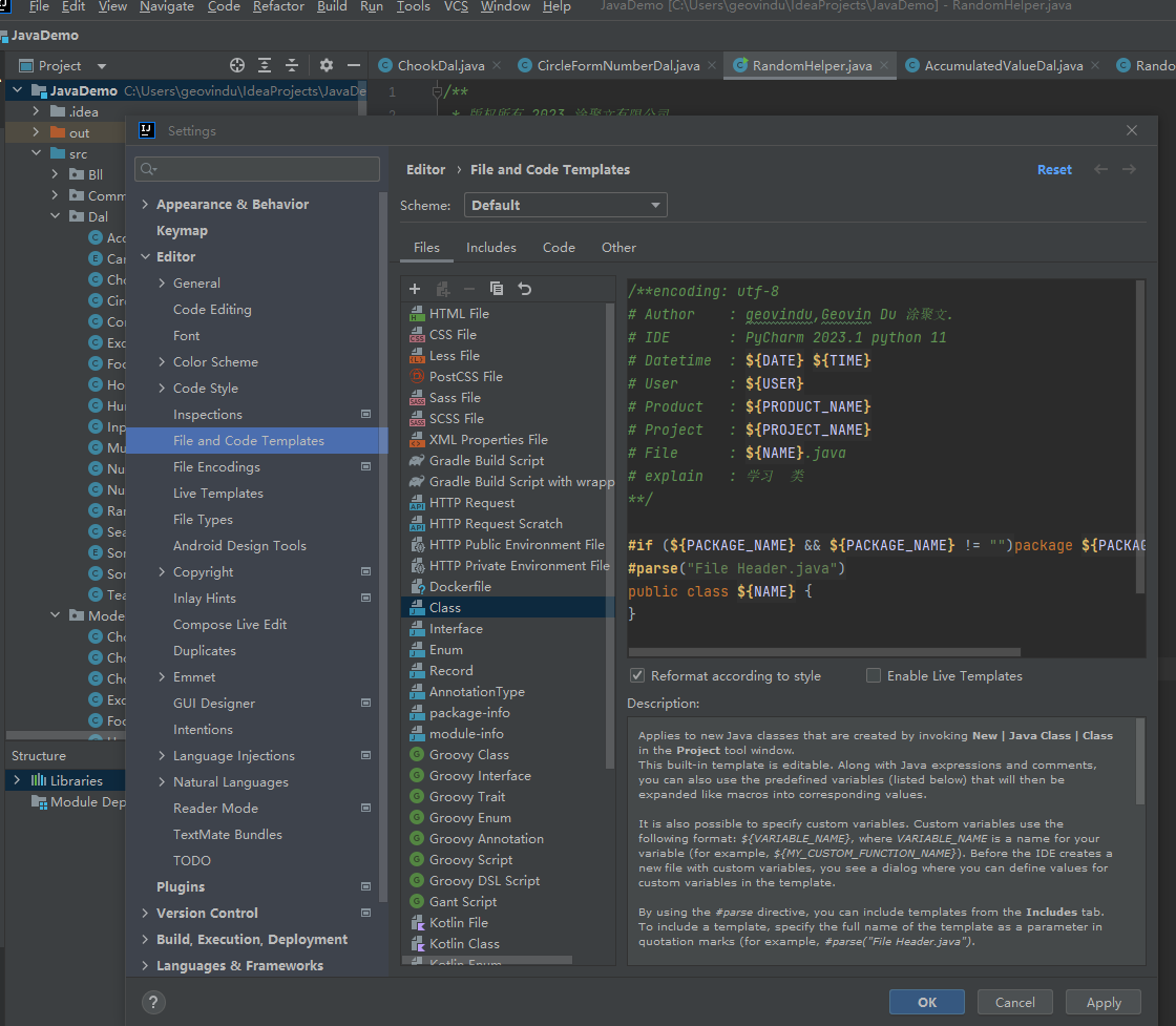 File template variables | IntelliJ IDEA Documentation (jetbrains.com)