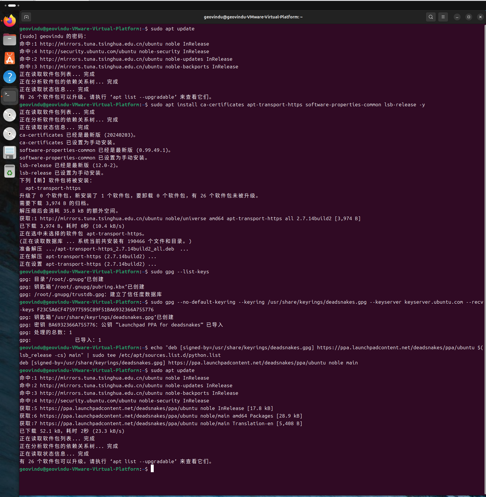 Ubuntu 发行版默认就安装了 Python,而且在 Python 发布新版本时它也不会更新。所以我们需要手动导入已被广泛使用的知名第三方 PPA,以便安装最新版本的 Python 3.11。