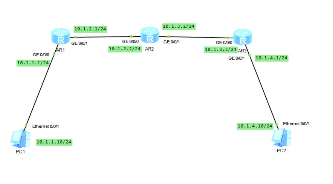 静态学习 网络管理员手动配置(将不知道的网段手动配置进路由表)