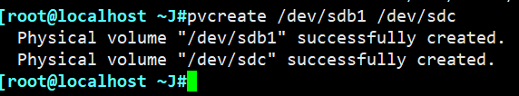 [root@localhost ~J#pvcreate /dev/sdb1 /dev/sdc