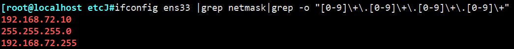 ifconfig ens33 |grep netmask|grep -o "[0-9]\+\.[0-9]\+\.[0-9]\+\.[0-9]\+"|head -n 1