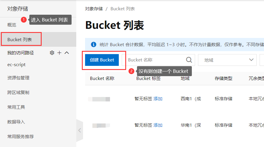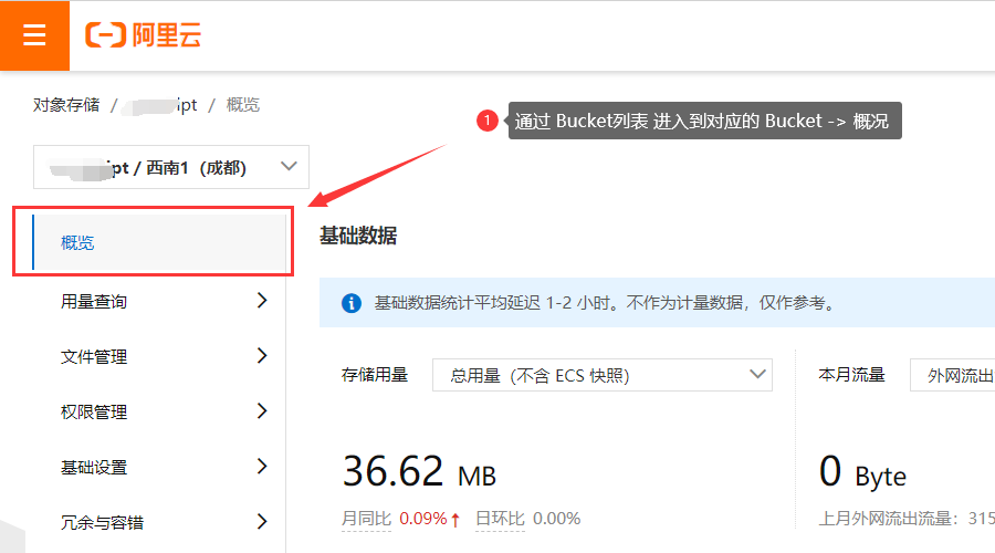 3.1 通过 Bucket列表 进入到对应的 Bucket -> 概况
