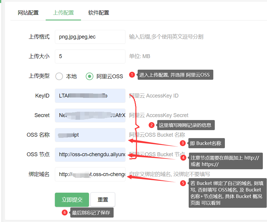 4.4 注意: 若无法上传文件, 请检查是否配置了对应上传格式以及大小是否符合