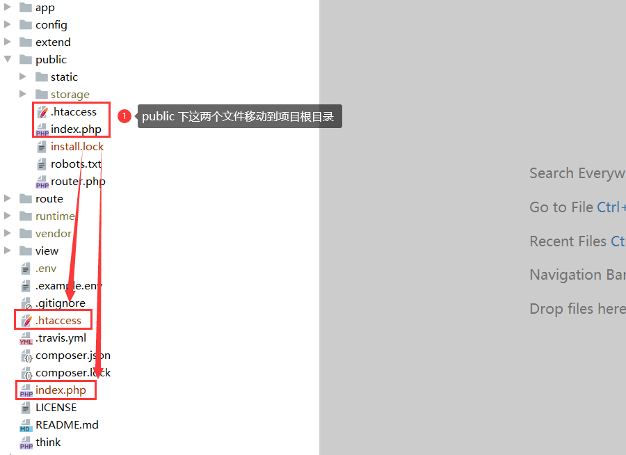 public下面的index.php、.htaccess这两个文件移动到根目录