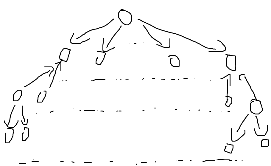 容易发现,每条出边至少增加一条路径,所以 good pairs 数量至少为 \(n-1\)。构造 good pairs 数量为 \(n-1\) 的定向方案是容易的,如下图: