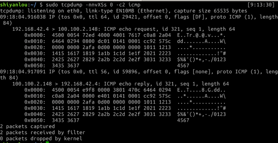 使用 tcpdump 命令查看 ping 命令包的结构: