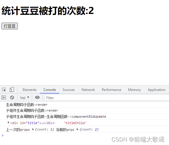 <button id='btn' onClick={this.handleClick}>打豆豆</button>