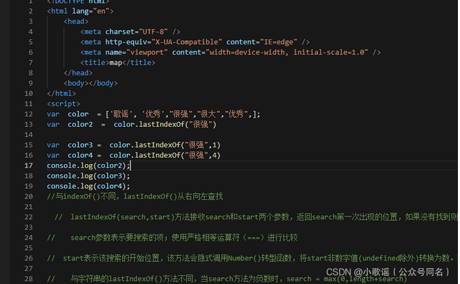 在我们的日常开发中 不免会有很多需要处理数据的方法 本节主要说一说lastIndexOf不多说把代码编辑器打开