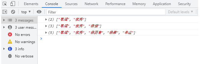 var  color3  =  color.concat(['很厉害', '很棒', '幸运']);