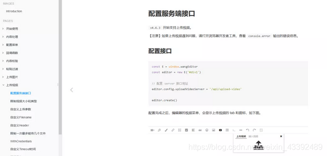 this.editor.config.uploadVideoServer = 't.com/api/v1/upload/picture'// 配置服务器端地址