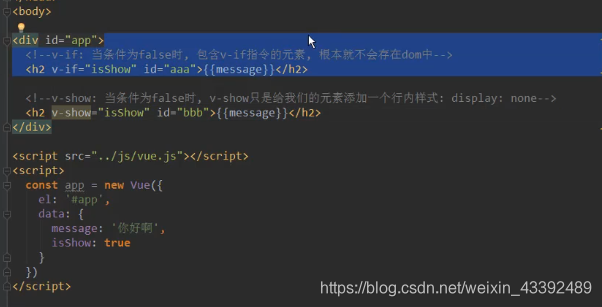 <span v-show="isuser" id="bbb">{{message}}</span>