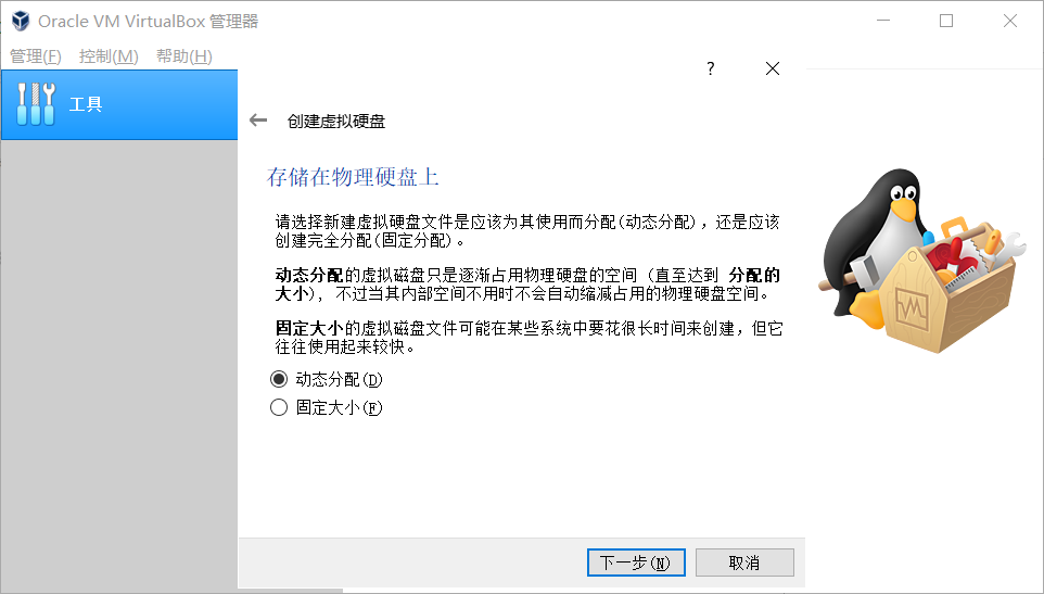 6、设置为动态分配存储空间以便后期调节虚拟机存储空间