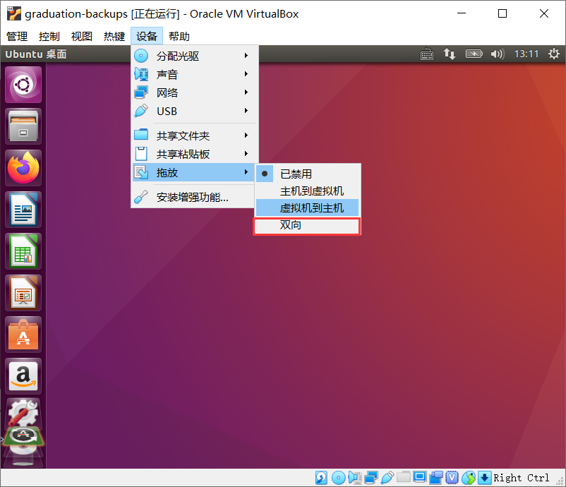重启虚拟机后即可使用拖拽文件传输以及共享粘贴板。