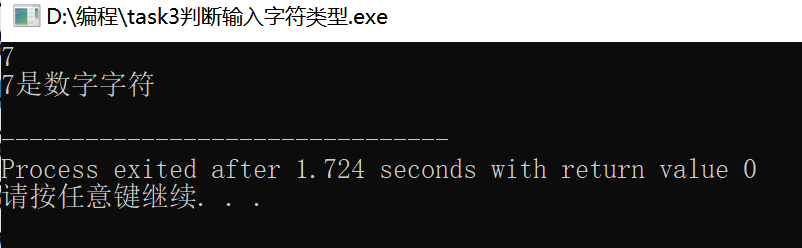 #include<stdio.h> int main() { char x; x=getchar(); if(x>='0'&&x<='9'){ printf("%c是数字字符\n",x); } else if((x>='a'&&x<='z')||(x>='A'&&x<='Z')){ printf("%c是英文字母\n",x); } else{ printf("%c是其他字符\n",x); } return 0; }