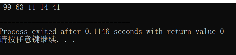 #include<stdio.h> #include<stdlib.h> #include<time.h> const int N = 5; int main() { int x,n; srand(time(0)); for(n=1;n<=N;n++) { x=rand()%100; printf("%3d",x); } printf("\n"); return 0; }